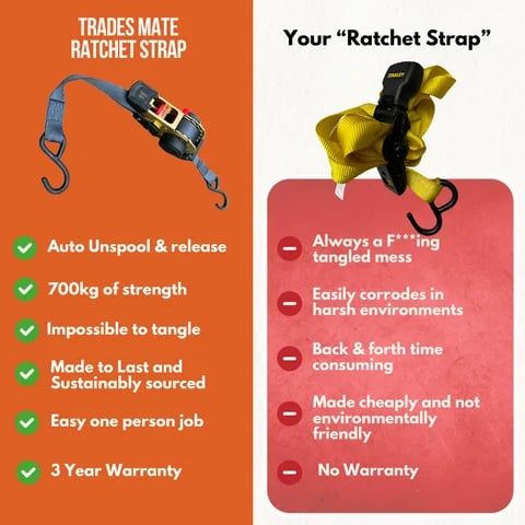 Our retractable ratchet straps are easy to use. Automatically unspool without tangling or twisting and roll back up effortlessly. Standard Straps can be a pain in the a** to roll back up and stay tidy. straps fix that and save time!